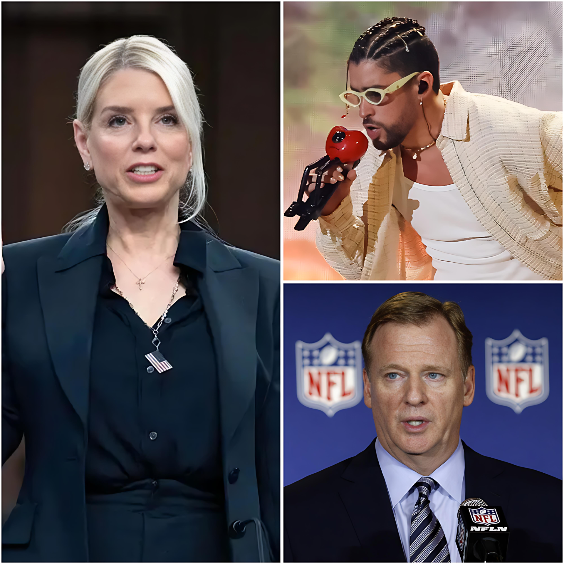 A FORMER ATTORNEY GENERAL JUST DECLARED ONE OF THE WORLD’S BIGGEST POP STARS A “WEAPON” ON LIVE TELEVISION.What started as a simple conversation about the Super Bowl halftime show spiraled into a national incident when Pam Bondi launched a stunning verbal attack on performer Bad Bunny. She didn’t just criticize the choice; she called him a “walking PR stunt for globalism” and accused the NFL of promoting a “halftime psy-op.” Her fiery takedown has completely fractured the internet, turning the biggest game of the year into a political battleground before a single player has even taken the field. The comments have sent network producers scrambling and forced the league into crisis mode as millions of people take sides in a debate that is no longer about football, but about the cultural soul of America. This has officially become the most controversial halftime show in history, and it hasn’t even happened yet. What did she say that sent the NFL into a full-blown panic? We have the full, unfiltered story and the explosive fallout. Find the complete article in the comments……..Full story👇👇👇