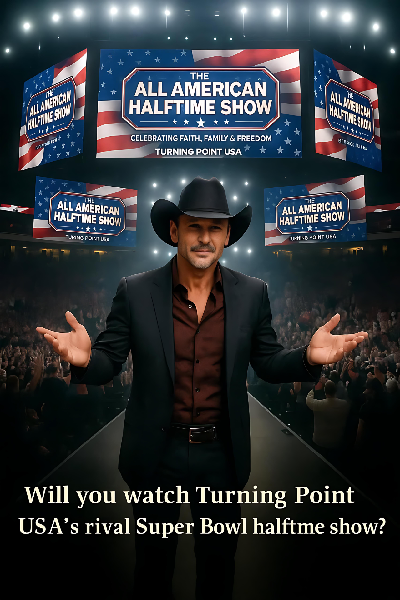 🔥 BREAKING: Tim McGraw Joins “The All-American Halftime Show” — A Performance That Could Redefine Super Bowl History! 🇺🇸✨ Social media is exploding after country music superstar Tim McGraw officially confirmed his appearance at Turning Point USA’s “The All-American Halftime Show,” set to air opposite Super Bowl 60 in a bold cultural statement. Hosted by Erika Kirk, widow of the late Charlie Kirk, the event is being hailed as “a spiritual revolution in an age of entertainment” — a celebration of faith, family, and freedom that promises to touch millions. McGraw’s message — already going viral — struck a chord across America: “This isn’t competition. It’s conviction — a reminder that God still has His hand on this nation.” Fans are calling it “the halftime show America truly needs.” Tim will perform “Live Like You Were Dying” and “Humble and Kind,” backed by a 200-voice choir, a breathtaking light display, and visuals honoring Charlie Kirk’s legacy. 👉 For the first time ever, Super Bowl has a rival — not from the field, but from the heart of America…….Full story👇👇👇