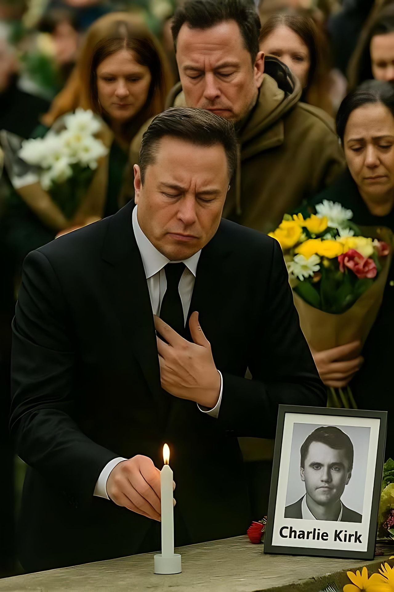 The afternoon air was crisp, almost unnaturally still. A faint wind rustled the cypress trees standing like solemn sentinels on the hillside, casting long shadows across the cemetery grounds. It was the kind of quiet that seemed to carry weight—a silence that didn’t simply exist, but pressed itself onto every soul present. And into this hush walked a figure the world knows well, yet had never expected to see here: Elon Musk.