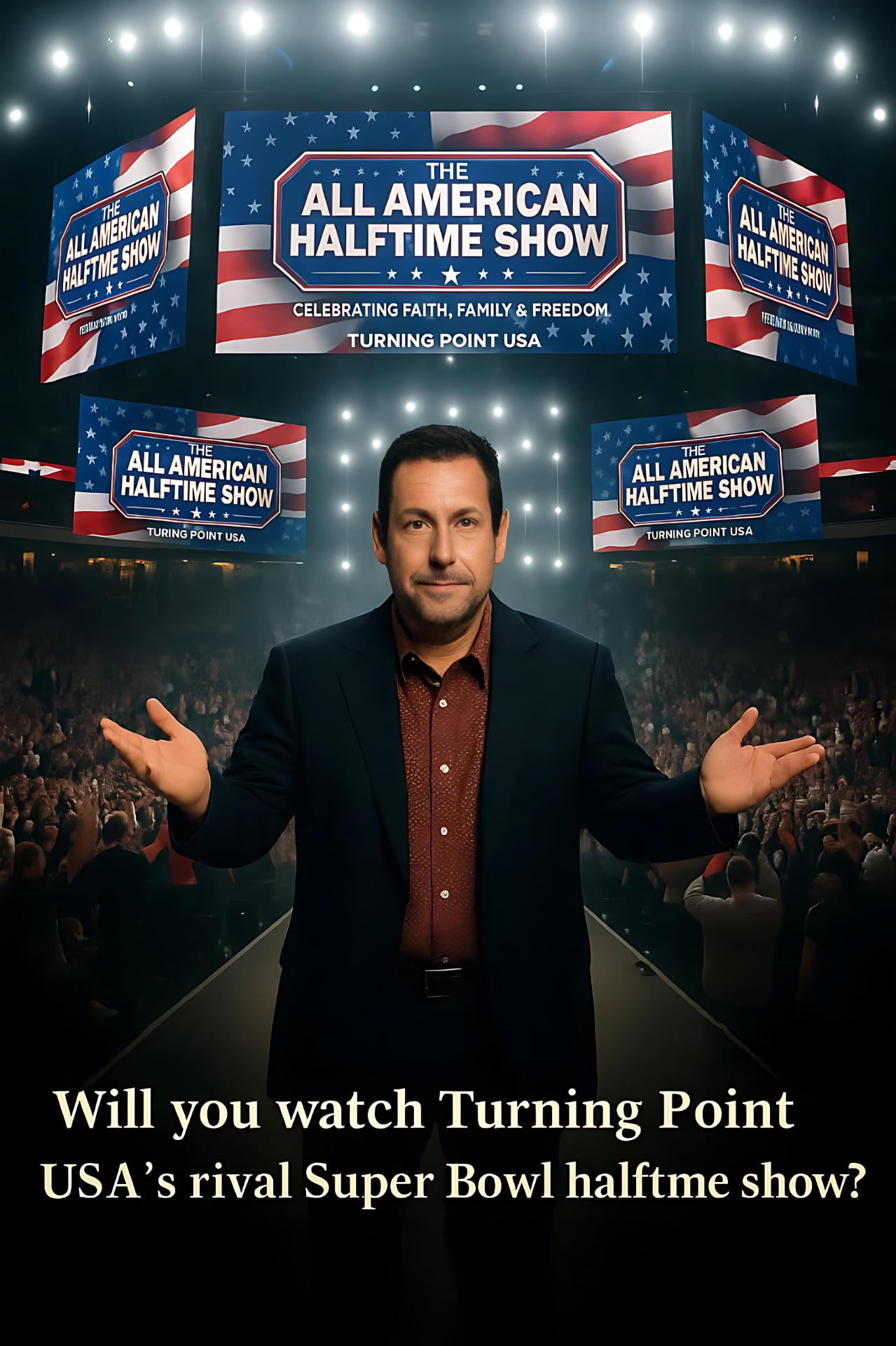 đĽ BREAKING: Adam Sandler Joins âThe All-American Halftime Showâ â A Performance That Could Redefine Super Bowl History! đşđ¸â¨Â Social media is exploding after comedy and entertainment icon Adam Sandler officially confirmed his appearance at Turning Point USAâs âThe All-American Halftime Show,â set to air opposite Super Bowl 60 in a bold cultural statement. Hosted by Erika Kirk, widow of the late Charlie Kirk, the event is being hailed as âa spiritual revolution in an age of entertainmentâ â a celebration of faith, family, and freedom that promises to touch millions. Sandlerâs message â already going viral â struck a chord across America: âThis isnât competition. Itâs conviction â a reminder that God still has His hand on this nation.â Fans are calling it âthe halftime show America truly needs.â Adam will perform beloved classics and inspirational pieces, backed by a 200-voice choir, a breathtaking light display, and visuals honoring Charlie Kirkâs legacy. đ For the first time ever, Super Bowl has a rival â not from the field, but from the heart of America…….Full storyđđđ