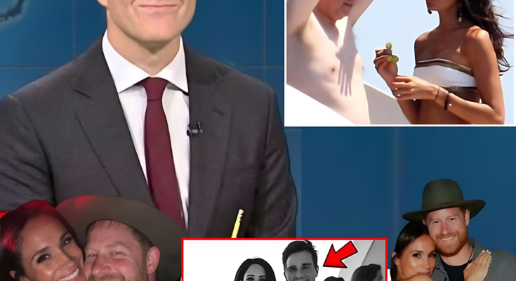 Meghan Markle is once again at the center of a media firestorm — but this time, it wasn’t sparked by a royal, a tabloid, or an anonymous insider. It was triggered live on television by none other than Colin Jost, the sharp-tongued star of Saturday Night Live, who casually dropped a bombshell reference to Meghan’s alleged “yacht girl days”… and the world hasn’t stopped talking since.